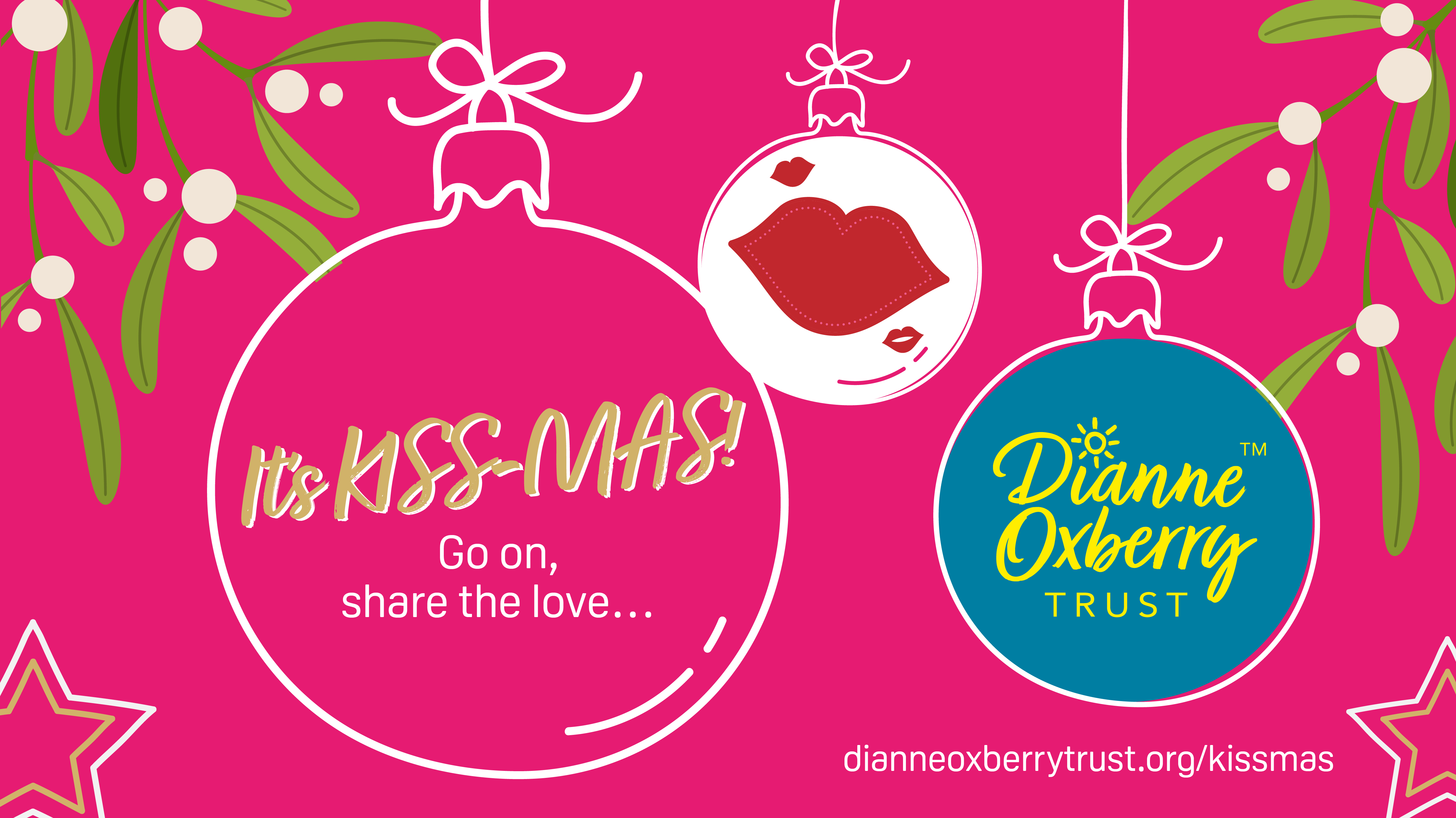 By visiting www.dianneoxberrytrust.org/kissmas you can dedicate a bauble to someone you love, someone you’ve loved and lost, or even someone you’d like to meet under the mistletoe this festive season.